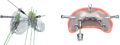 コンピューターシミュレーションによる治療計画に基づいてインプラントを埋め込むために、サージカル・テンプレートをお口に取り付けます。